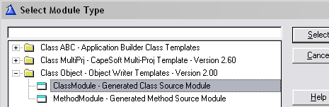 modules select ClassModule from the Object template class.