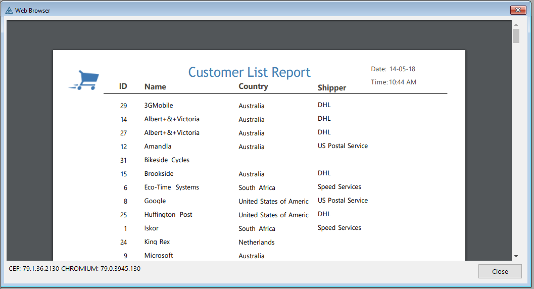 A simple HTML control with Address bar, Back, Forward, Refresh, Stop and