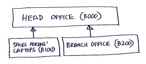 B000 is the Head Office and B100, B200 and B300 are regional offices. B110,