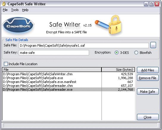 Safe Writer is used to encrypt files (using either the 168-bit Triple DES
